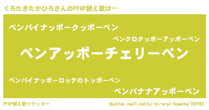 | 欧米人風あだ名 | 『くろたきたかひろクリステル』 |