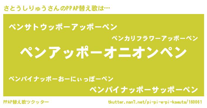 | ピコ太郎風あだ名 | 『ピサ六郎』『サト四郎』『ピコサ郎』 |