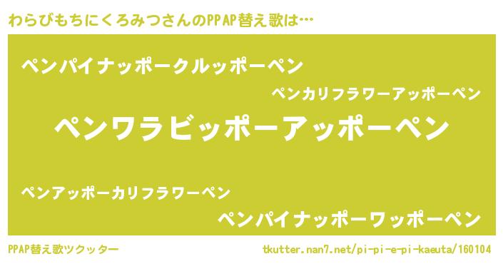 | 欧米人風あだ名 | 『ウサインわらびもちにくろみつ』 |