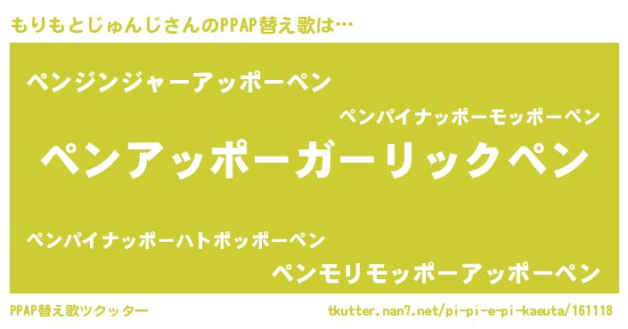 | ピコ太郎風あだ名 | 『ピモ十郎』『モコ一郎』『モリ八郎』 |