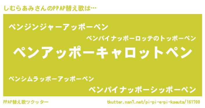 | 肩書あだ名 | 『しむらあみ国家主席』『しむらあみ総統』 |