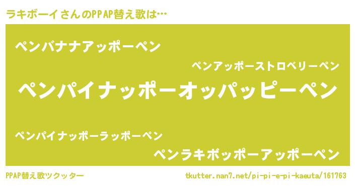 | ピコ太郎風あだ名 | 『ララ太郎』『ラコ次郎』『ラキ一郎』 |