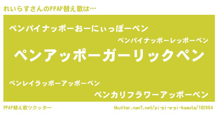 | 意味不明あだ名 | 『ヨモギ科れいらす属』『自称れいらす』 |