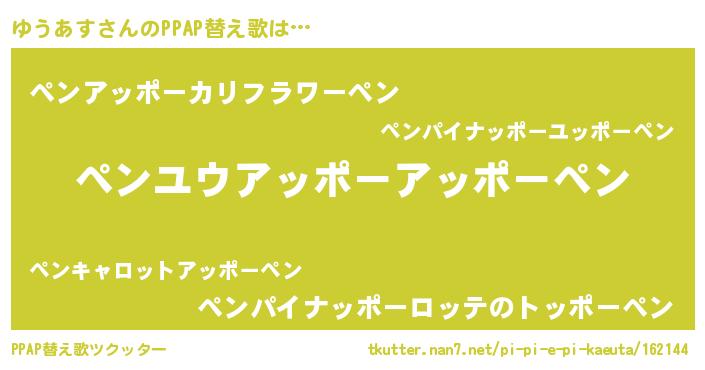| ピコ太郎風あだ名 | 『ユウ六郎』『ピユ五郎』『ユユ太郎』 |