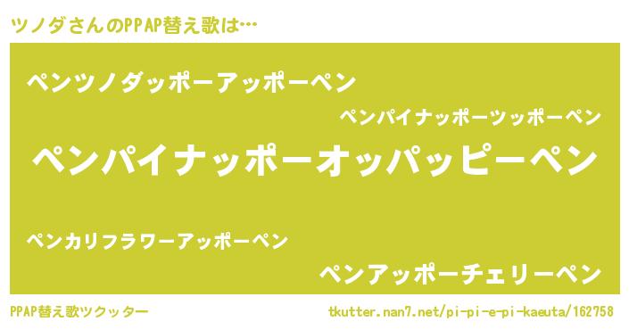 | ピコ太郎風あだ名 | 『ツツ太郎』『ツノ二郎』『ピツ一郎』 |