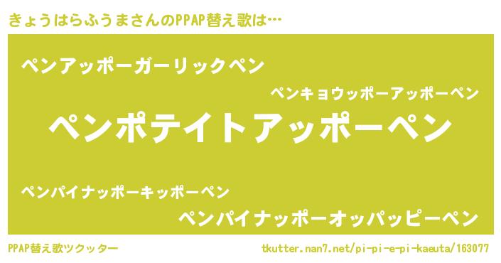 | 欧米人風あだ名 | 『アンジェラ・きょうはらふうま』 |