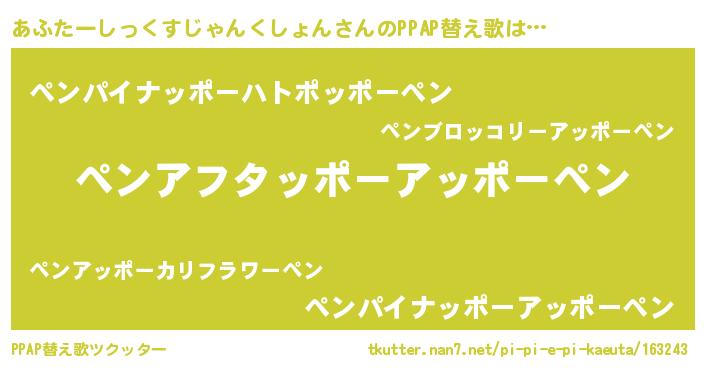 | ピコ太郎風あだ名 | 『アフ三郎』『アア太郎』『ピコア郎』 |