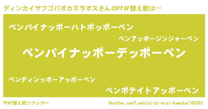 | ヘコむあだ名 | 『ディンカイサフゴパオカミラオス(小並感)』 |