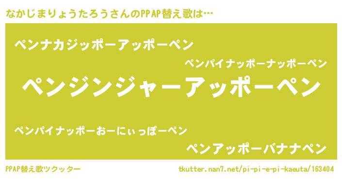 | 料理風あだ名 | 『なかじまりょうたろうのカルパッチョ風』 |