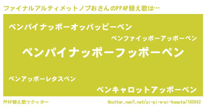 | 欧米人風あだ名 | 『アンジェラ・ファイナルアルティメットノブお』 |