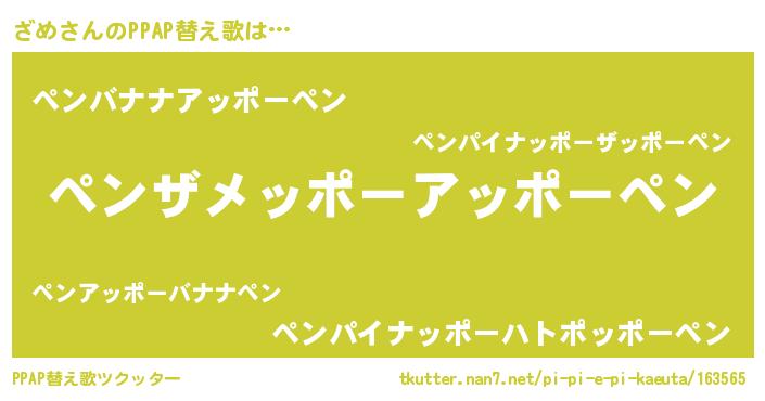 | ピコ太郎風あだ名 | 『ザメ五郎』『ザコ次郎』『ザザ太郎』 |