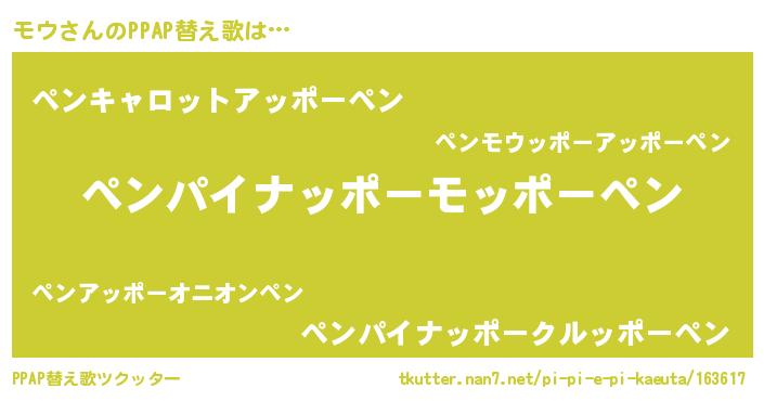 | ピコ太郎風あだ名 | 『ピコモ郎』『モコ八郎』『モモ太郎』 |