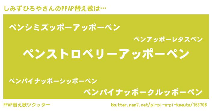 | ピコ太郎風あだ名 | 『シコ一郎』『シミ八郎』『シシ太郎』 |