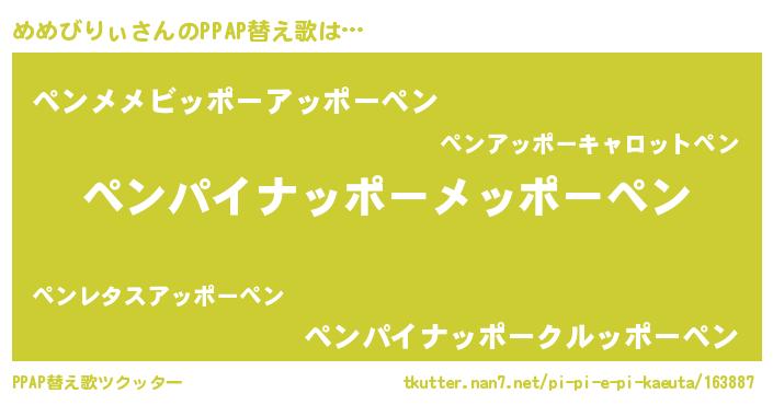 | ピコ太郎風あだ名 | 『ピコメ郎』『メメ次郎』『メメ太郎』 |