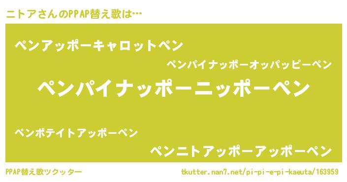 | 意味不明あだ名 | 『自称ニトア』『永久保存ニトア』 |
