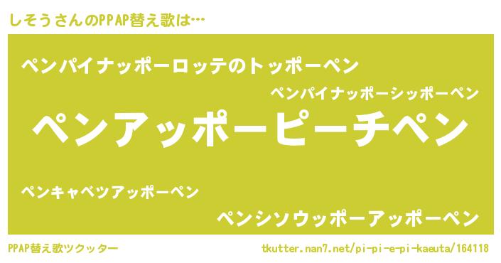 | ピコ太郎風あだ名 | 『ピシ次郎』『シシ太郎』『シソ五郎』 |