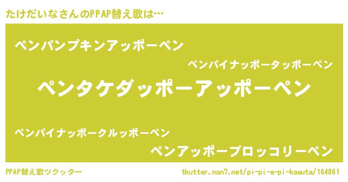| ピコ太郎風あだ名 | 『タケ四郎』『タコ二郎』『ピタ十郎』 |