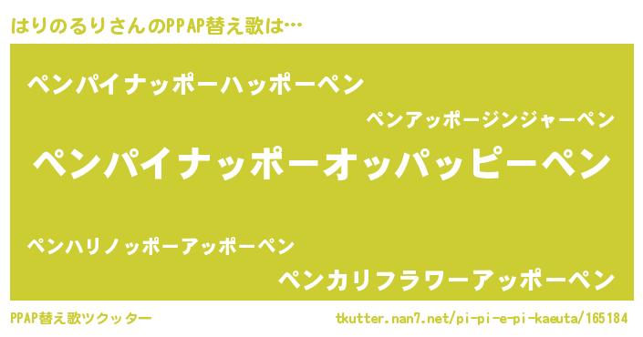 | 男性向けラノベタイトル風あだ名 | 『Re:はりのるりから始める異世界生活』 |