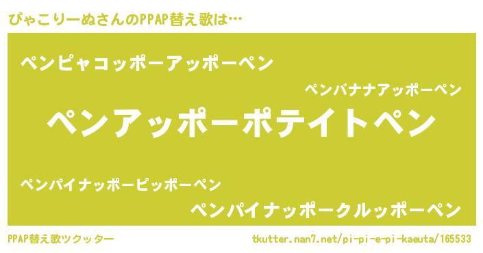 | 欧米人風あだ名 | 『ぴゃこりーぬクリステル』 |