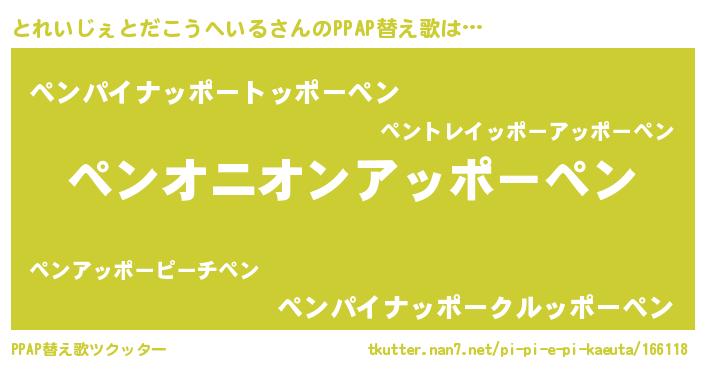 | ピコ太郎風あだ名 | 『トコ六郎』『ピコト郎』『トト太郎』 |