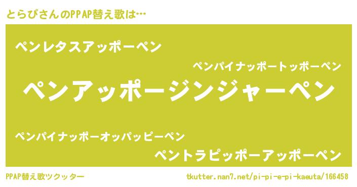 | ピコ太郎風あだ名 | 『ピト六郎』『トコ史郎』『トラ三郎』 |