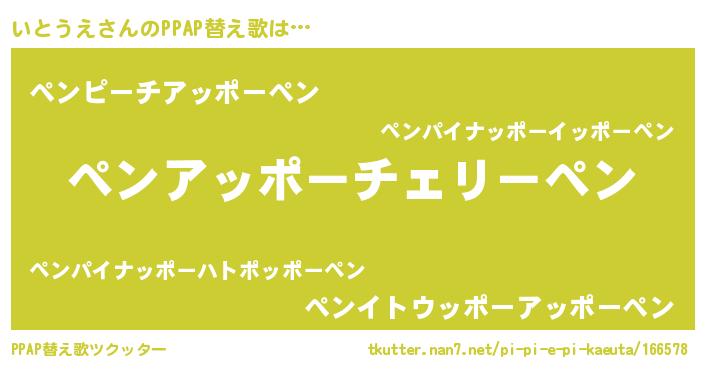 | ピコ太郎風あだ名 | 『ピイ一郎』『イコ次郎』『イト八郎』 |