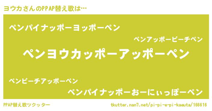 | 意味不明あだ名 | 『とにかく怪しいヨウカ』『自称ヨウカ』 |