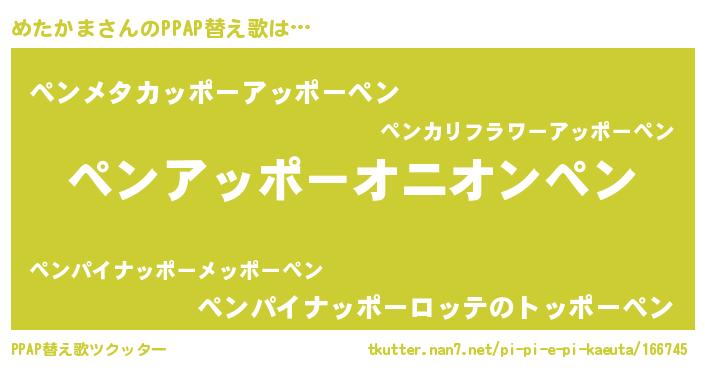 | 意味不明あだ名 | 『めたかまフォーエバー』『自称めたかま』 |