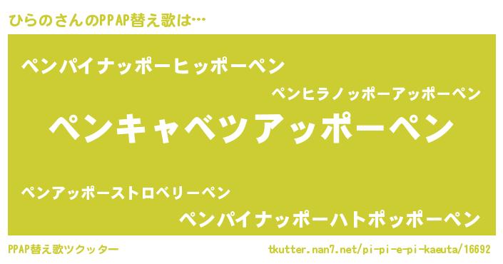 | 意味不明あだ名 | 『ペロリンひらの』『永久保存ひらの』 |