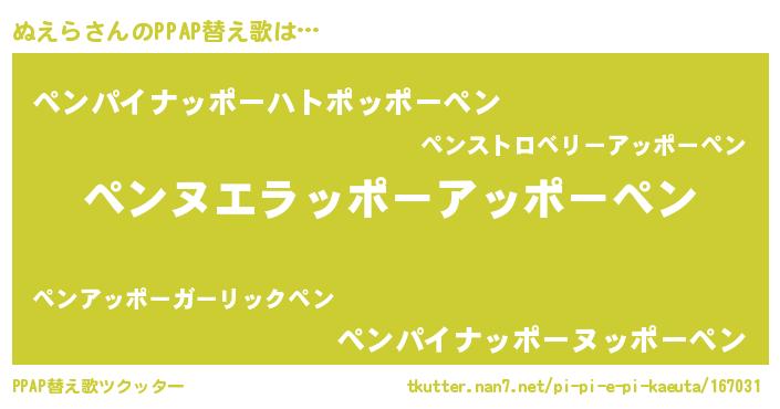 | ピコ太郎風あだ名 | 『ヌエ二郎』『ヌヌ太郎』『ピコヌ郎』 |