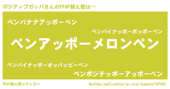 | 意味不明あだ名 | 『ポジティブガッパフォーエバー』 |
