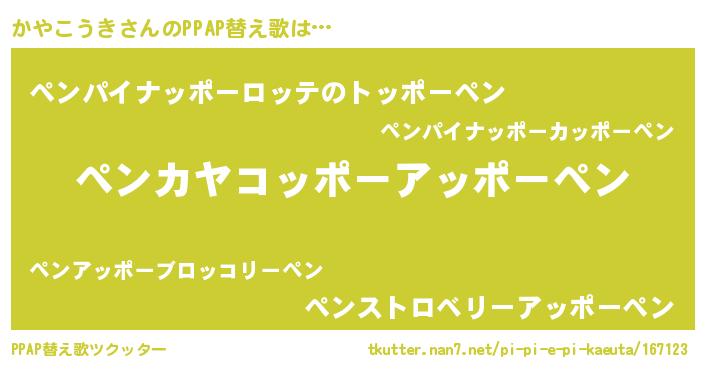 | ピコ太郎風あだ名 | 『カヤ二郎』『カカ太郎』『カコ一郎』 |