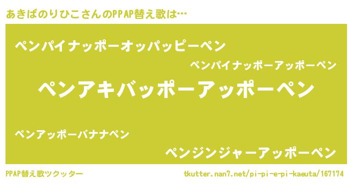 | 欧米人風あだ名 | 『ウサインあきばのりひこ』 |
