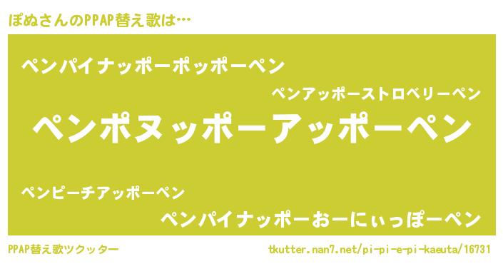 | 男性向けラノベタイトル風あだ名 | 『転生したらぽぬだった件』 |