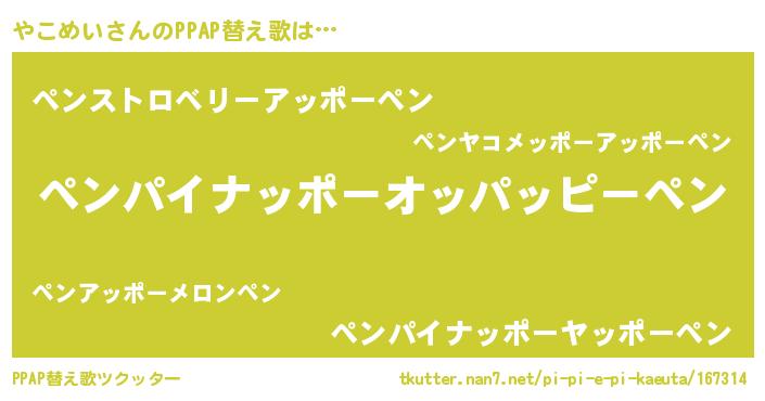 | 料理風あだ名 | 『バターが決め手!やこめい変身コクうまパスタ』 |