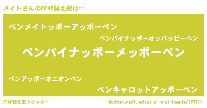| ピコ太郎風あだ名 | 『ピコメ郎』『メイ六郎』『メコ八郎』 |