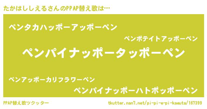 | 意味不明あだ名 | 『自称たかはししえる』 |