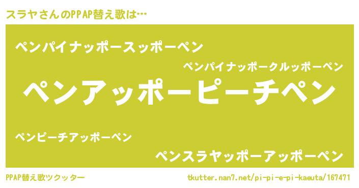 | ピコ太郎風あだ名 | 『ピス三郎』『ピコス郎』『スラ二郎』 |