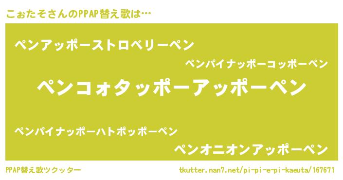 | ピコ太郎風あだ名 | 『コォ一郎』『ピコ一郎』『ココ六郎』 |