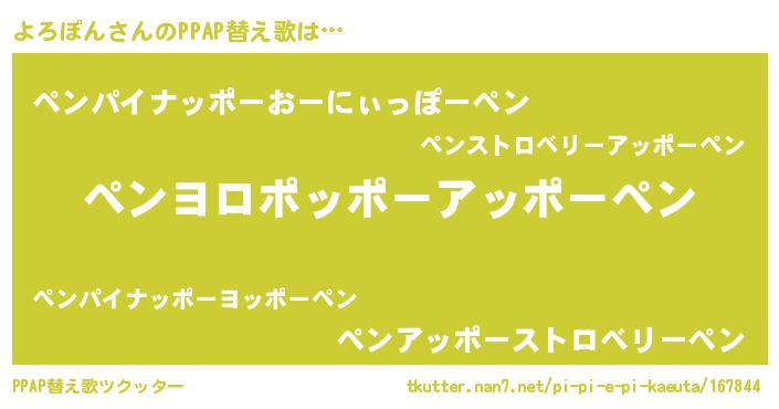 | ピコ太郎風あだ名 | 『ヨロ三郎』『ヨヨ太郎』『ピヨ史郎』 |