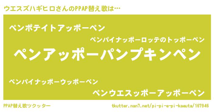| ピコ太郎風あだ名 | 『ピウ二郎』『ウコ五郎』『ウエ四郎』 |