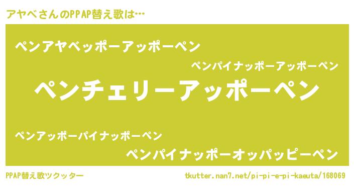 | ピコ太郎風あだ名 | 『アコ三郎』『アヤ次郎』『アア太郎』 |