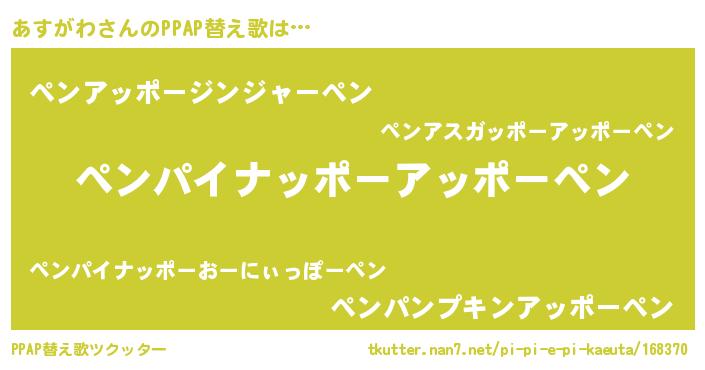 | 意味不明あだ名 | 『自称あすがわ』『ヨモギ科あすがわ属』 |