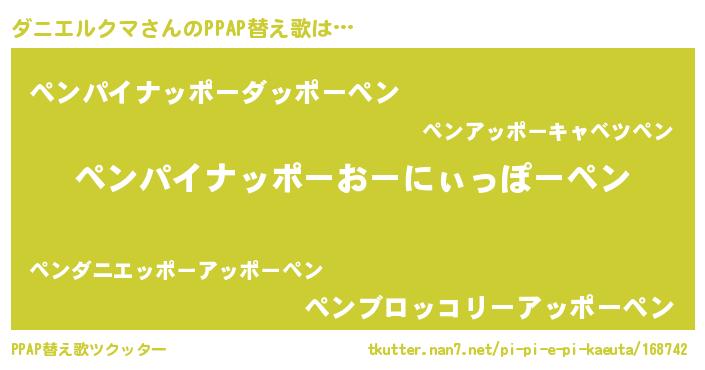 | 欧米人風あだ名 | 『トリンドルダニエルクマ』 |