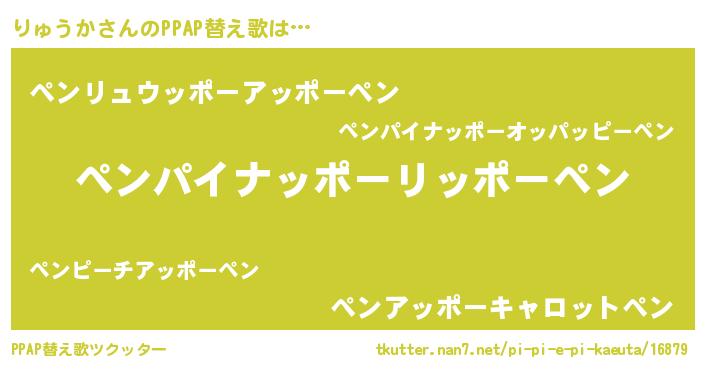 | 男性向けラノベタイトル風あだ名 | 『りゅうかという概念が存在しない退屈な世界 』 |