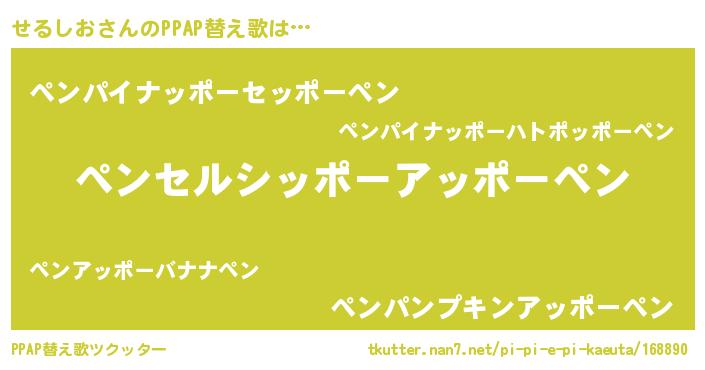 | 意味不明あだ名 | 『とにかく怪しいせるしお』 |