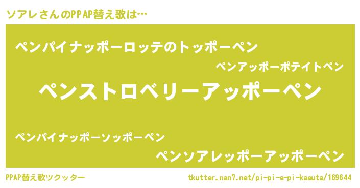 | 意味不明あだ名 | 『ペロリンソアレ』『自称ソアレ』 |