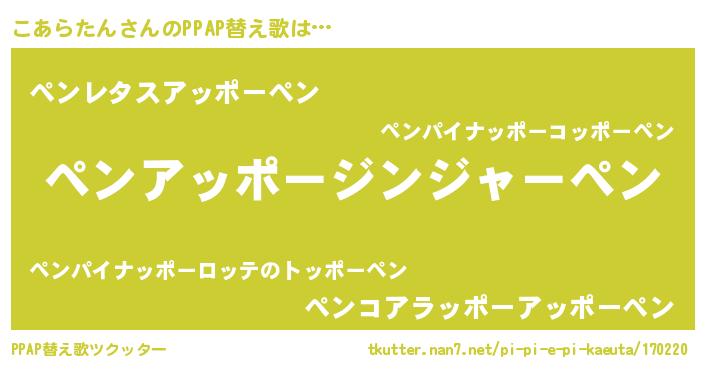 | ピコ太郎風あだ名 | 『ピコ六郎』『ココ史郎』『コア六郎』 |