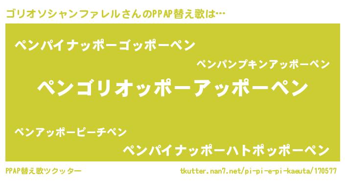 | 欧米人風あだ名 | 『トリンドルゴリオソシャンファレル』 |