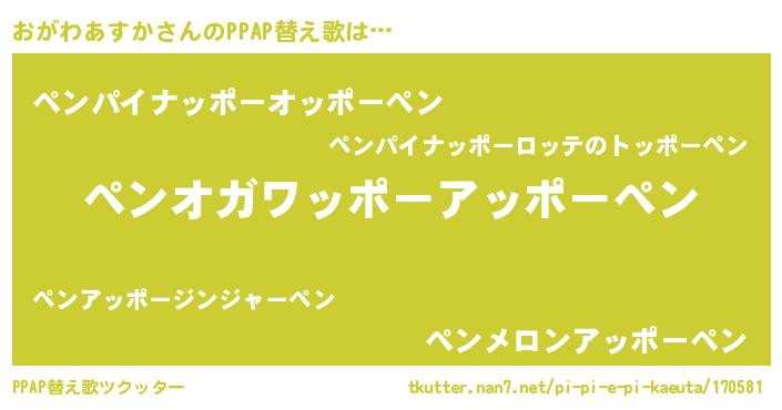 | 欧米人風あだ名 | 『ウサインおがわあすか』 |